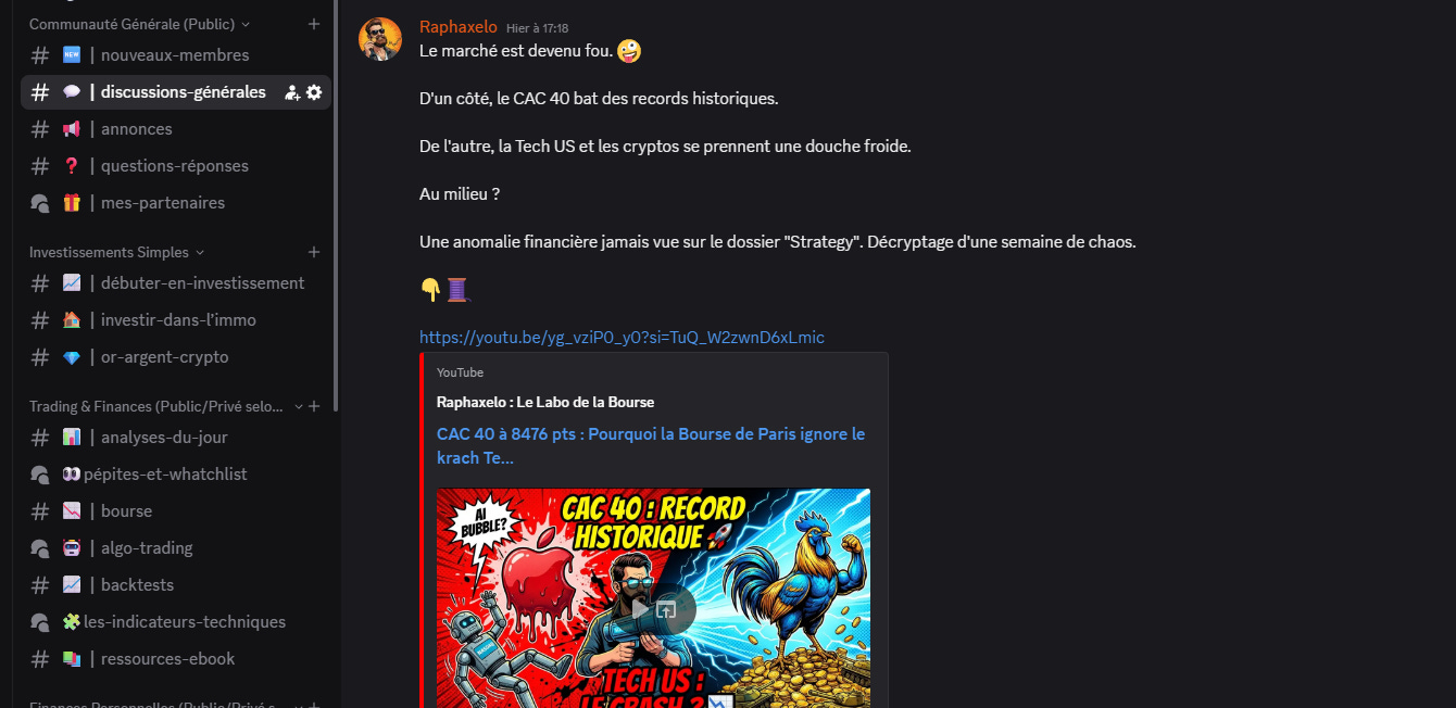 J’ai construit la communauté Raphaxelo pour que tu puisses poser des questions sur la bourse sans te retrouver fiché quelque part.